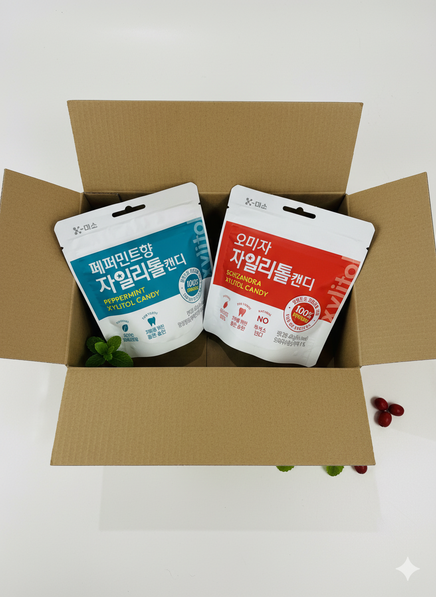 국산 오미자 추출물과 100% 핀란드산 자일리톨을 사용한
