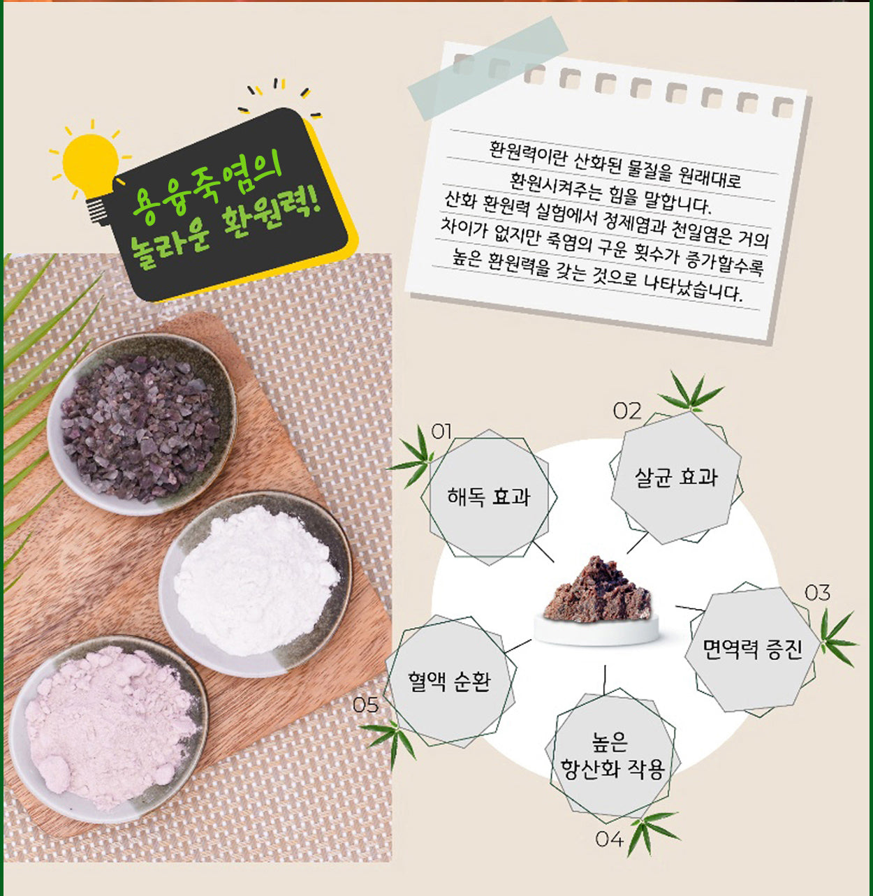 sun-dried sea salt is roasted three times to achieve a purity and